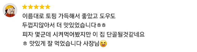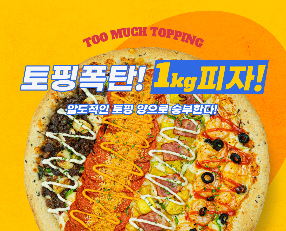 ‘1kg 피자’ 라는 타이틀에 맞게 압도적인 양의 푸짐한 토핑과
